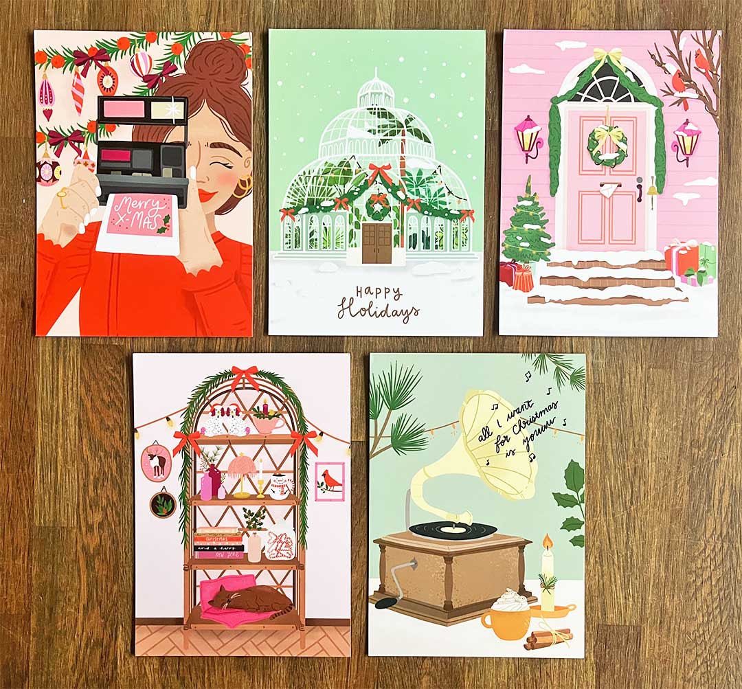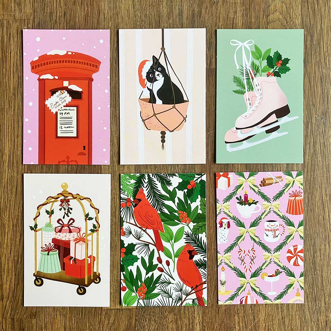Ben je op zoek naar kleurrijke papierwaren voor de kerst? Bij Muchable ben je op het juiste adres. Traditionele kleuren met een vleugje roze. De illustraties zijn uniek en hebben vrijwel allemaal een leuke twist waardoor het net iets anders is dan wat je in de winkel ziet.