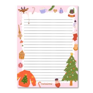 Brieven versturen rondom de feestdagen? Gebruik dit prachtige gelinieerde briefpapier met illustraties van kerstgerelateerde items zoals cadeaus, kerstbomen, foute kersttruien en meer op de voor- en achterkant.