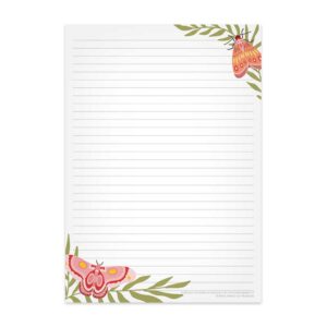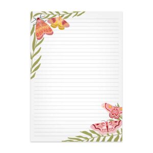 Schrijf jij graag brieven in het voorjaar? Gebruik dit gelinieerde briefpapier met illustraties van vlinders met takjes in de hoeken op de voor- en achterkant