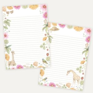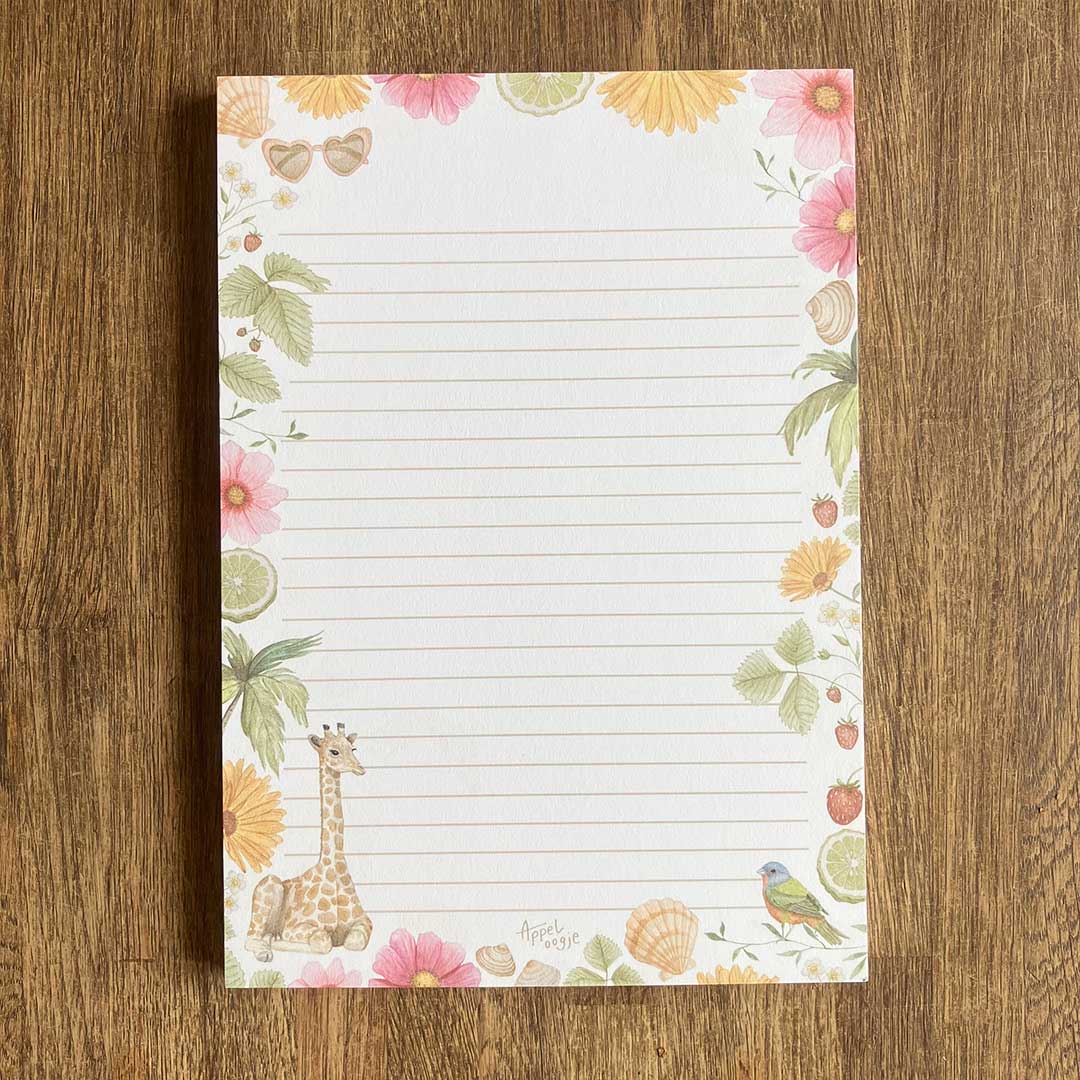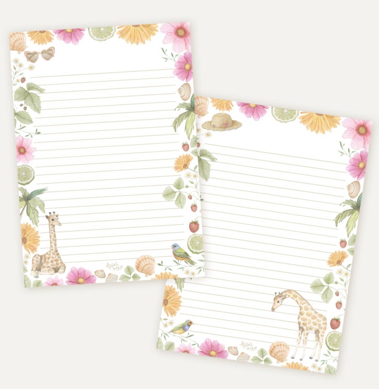 Post sturen in de zomer? Gebruik dit prachtige gelinieerde briefpapier met illustraties van een bloemen, fruit, dieren, schelpen en meer op de voor- en achterkant.