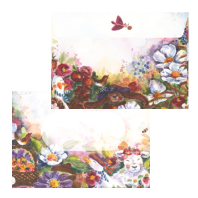 Je post versturen in een kleurrijke en vrolijke envelop? Gebruik deze enveloppen met illustraties van bloemen, dieren en fruit op de voor- en achterkant.