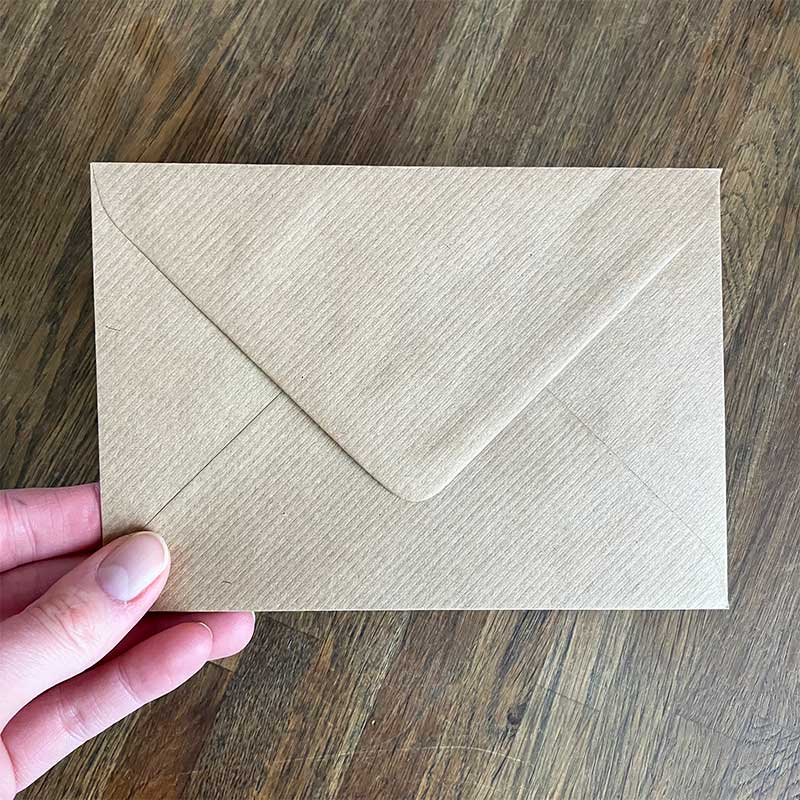 Je brief versturen in een neutrale envelop met een warme uitstraling? Gebruik enveloppen kraft! Door de kleur matcht de envelop bij vrijwel ieder ontwerp. Het geribbelde papier maakt het af.