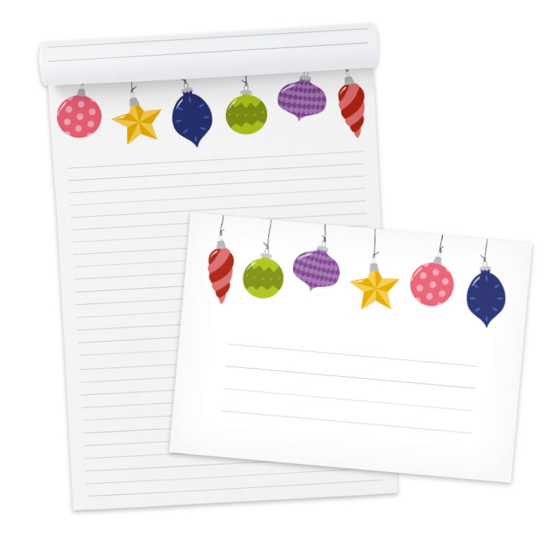 Wil jij brieven schrijven met kerst? Deze voordeelset postpapier bevat kleurrijke illustraties van kerstballen en zijn hierdoor uitermate geschikt voor de kerst.