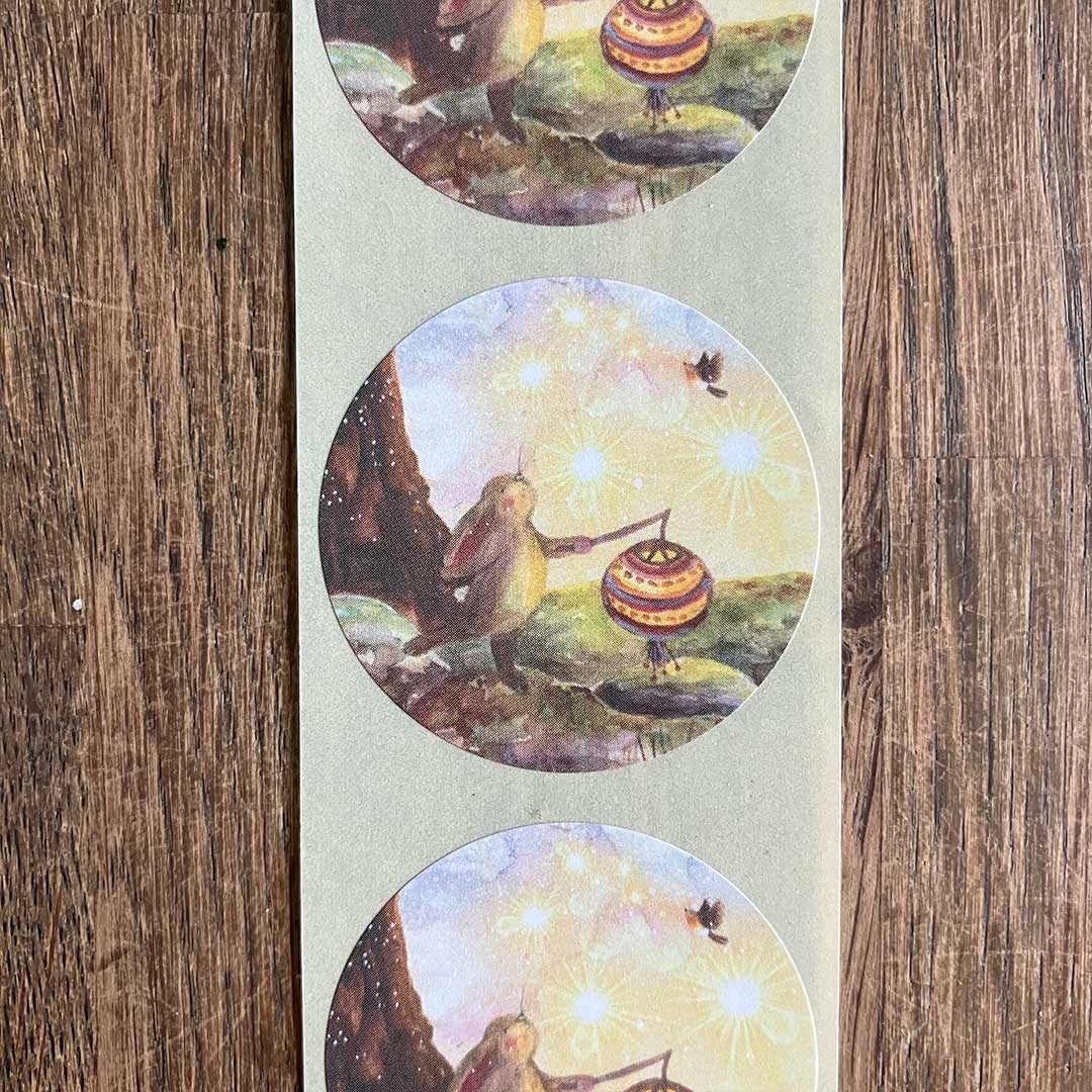 Dit vel sluitzegels van Romy illustrations bestaat uit 5 ronde stickers van 4 cm diameter. Ze zijn gedrukt op 90 grams wit plakpapier en bevatten bruine en groene tinten. De sluitzegels zitten op een lang vel waardoor je ze gemakkelijk van het papier af kunt halen. De ronde stickers zijn zijn ideaal om je envelop mee dicht te plakken en meteen op te vrolijken.