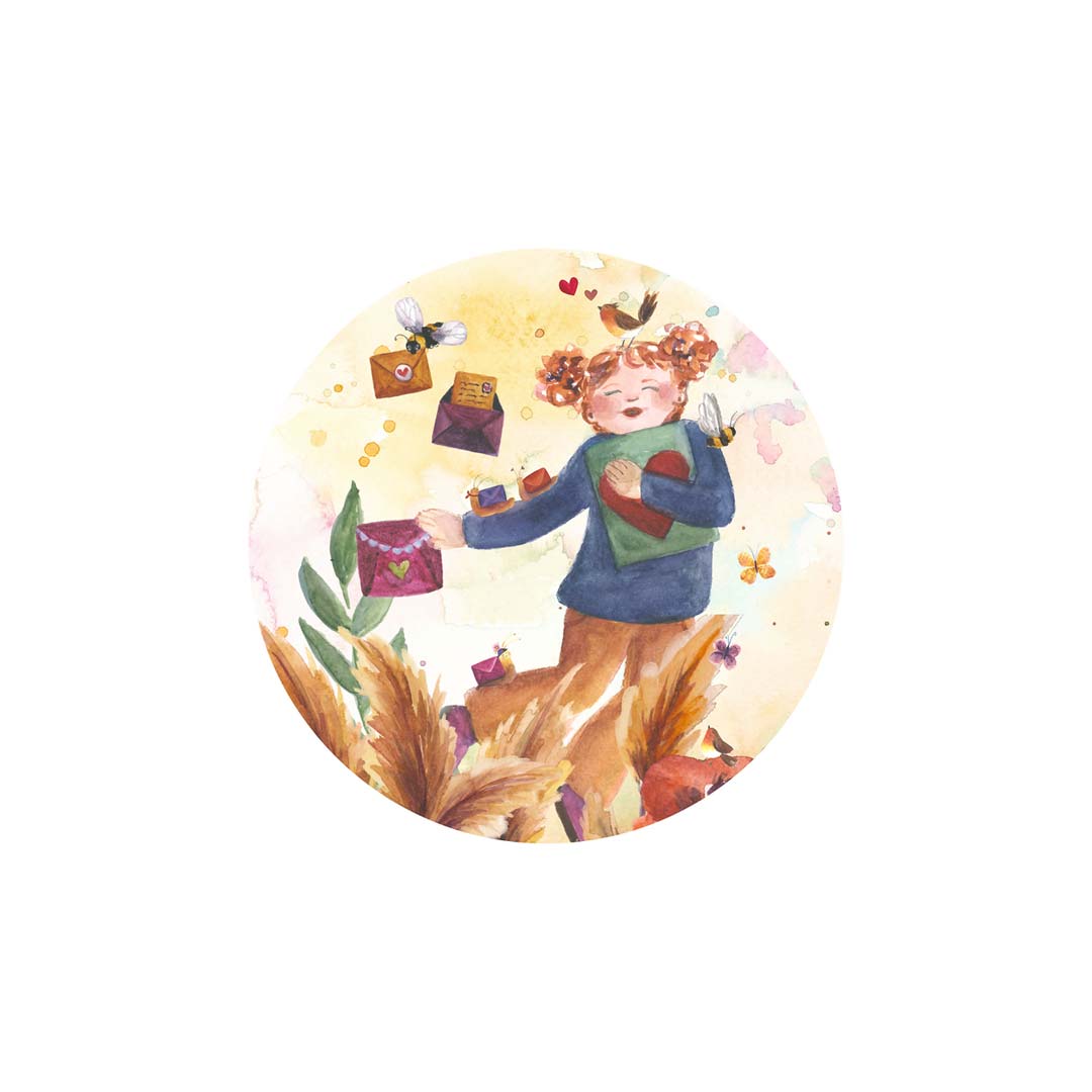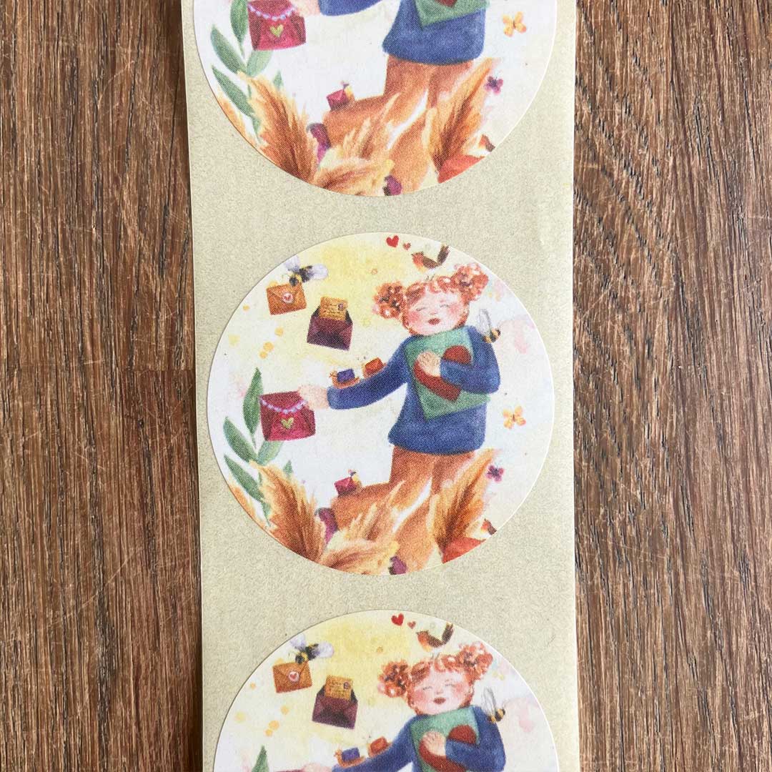 Wil jij jouw enveloppen mooi dicht maken? Gebruik deze sluitzegel met illustraties van een meisje met een kaart en enveloppen om haar heen.