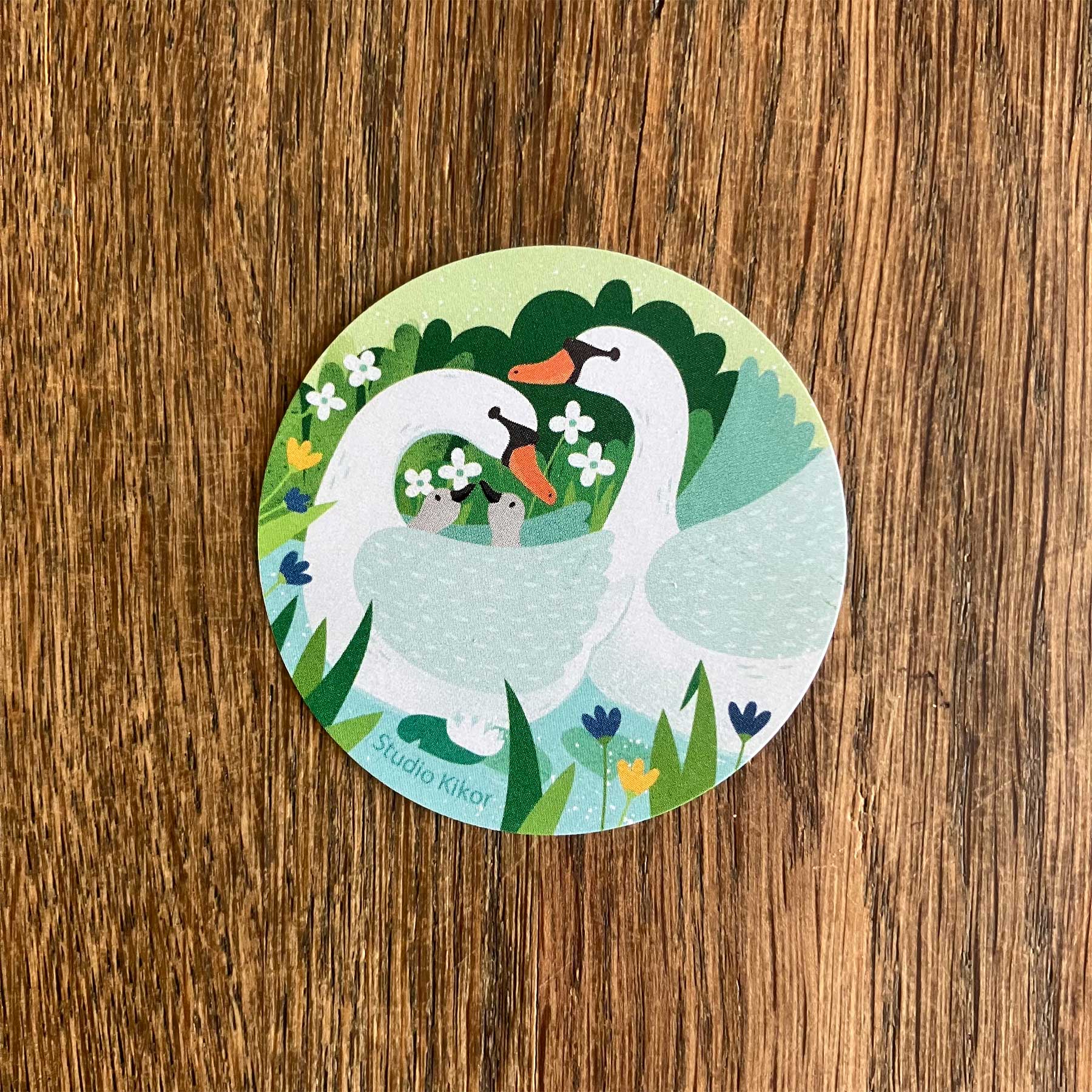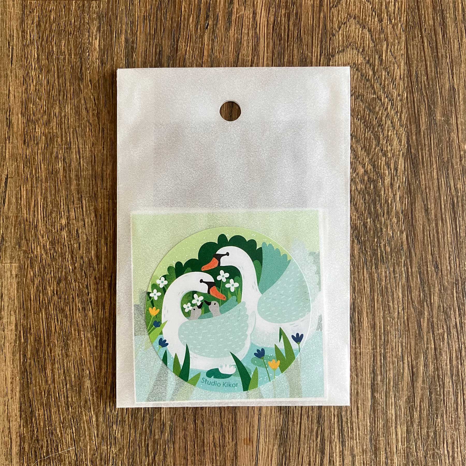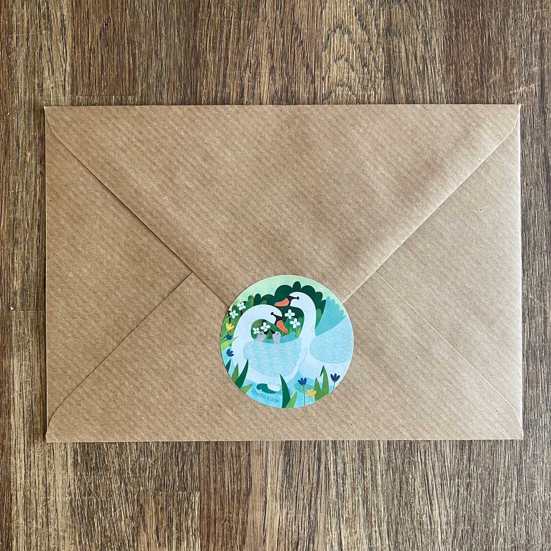 Stuur post met een beetje natuur! Gebruik deze sluitzegel met een illustratie van zwanen in een vijver om je enveloppen mee dicht te maken.